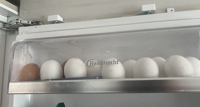 My eggs in the fridge in the kitchen, nothing special. from the chicken as she laid them.