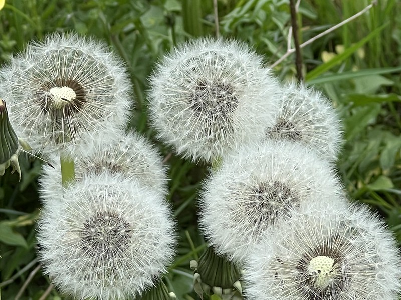 I had been waiting for this moment for some time. The dandelions had gathered their seeds together, so I had some good photos of the flowers. However, I realised that when the flowers were finished we get the seeed heads. As a kid we would blow away the seeds counting until they were gone, using them as a clock. Now the seed heads are here since two days so I took the opportunity to take a photo. Not very often I see so many nicely grouped together,